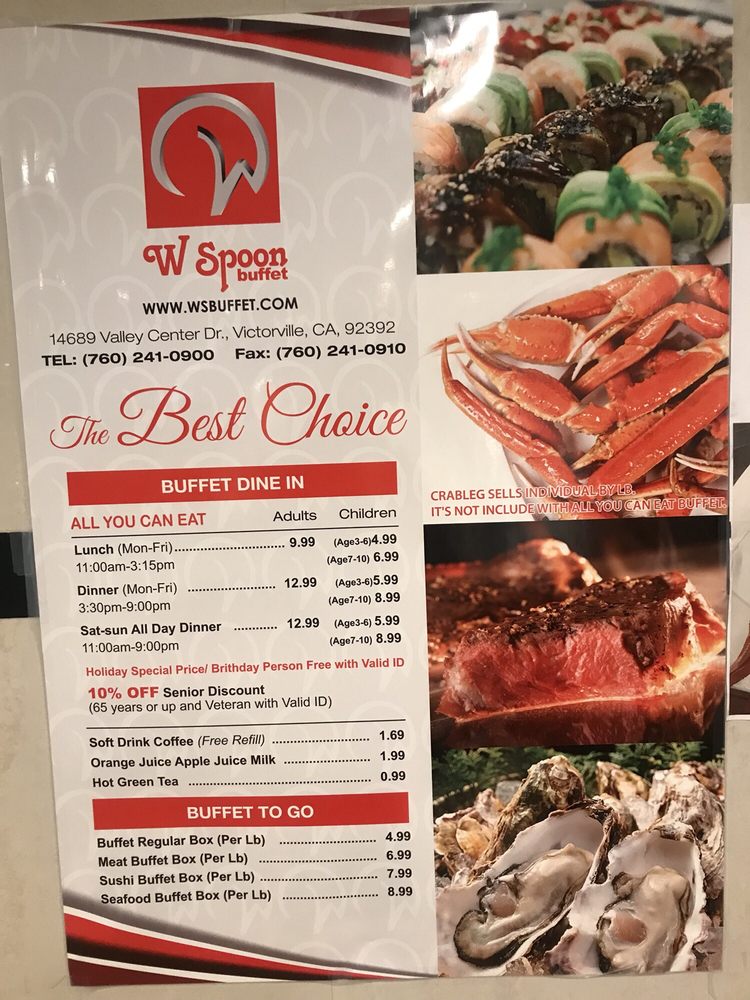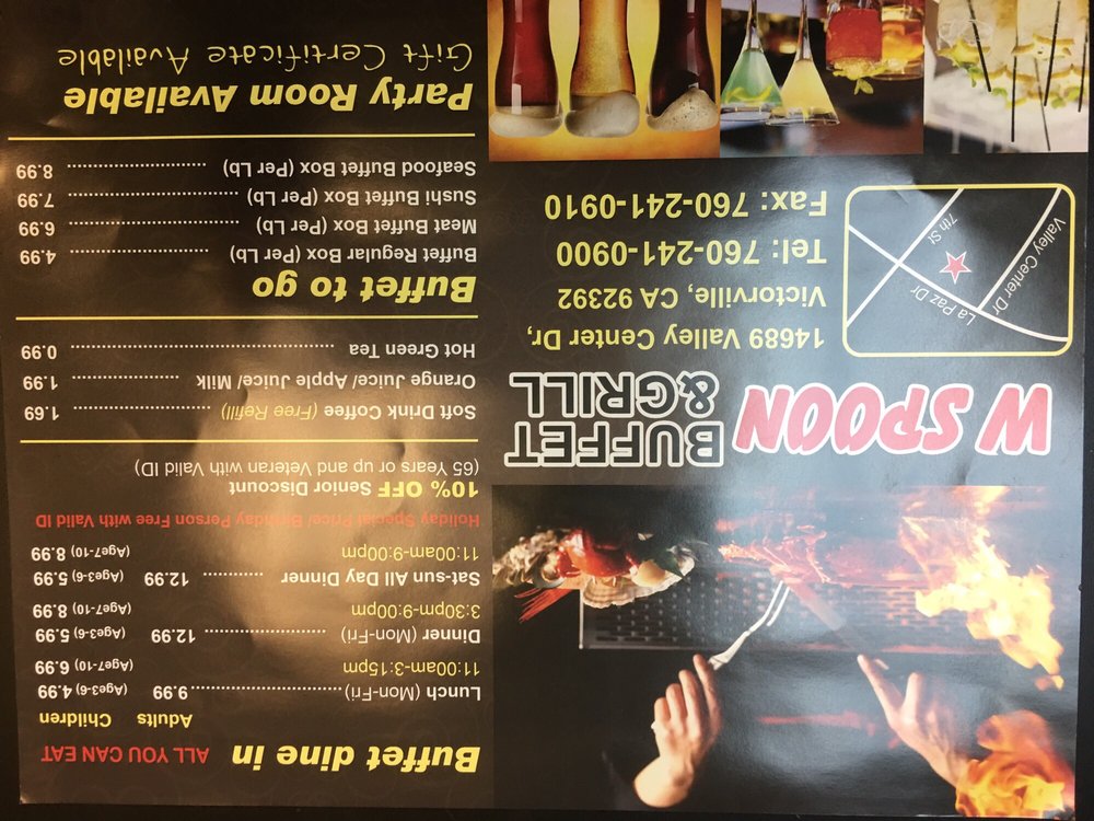 W Spoon Buffet, located in Victorville, CA, offers a diverse buffet experience with options for vegans and limited vegetarian choices. The restaurant is wheelchair accessible and accepts various payment methods, including cryptocurrency. Customers praise the friendly staff and efficient service, with favorites including the beef with stir-fried veggies and the hibachi grill. The clean ambiance and comfortable seating make for an enjoyable dining experience. Despite some mixed reviews on customer service, the majority appreciate the fresh and versatile food selection, especially highlighting the teppanyaki cooking and sushi options. With ample parking, Wi-Fi, and options for private events, W Spoon Buffet is a great choice for families and groups looking for a casual dining experience with a wide range of dishes to choose from.